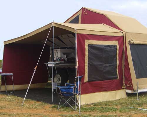 Canopy over the kitchen area with two side walls offers great protection. Other options available.